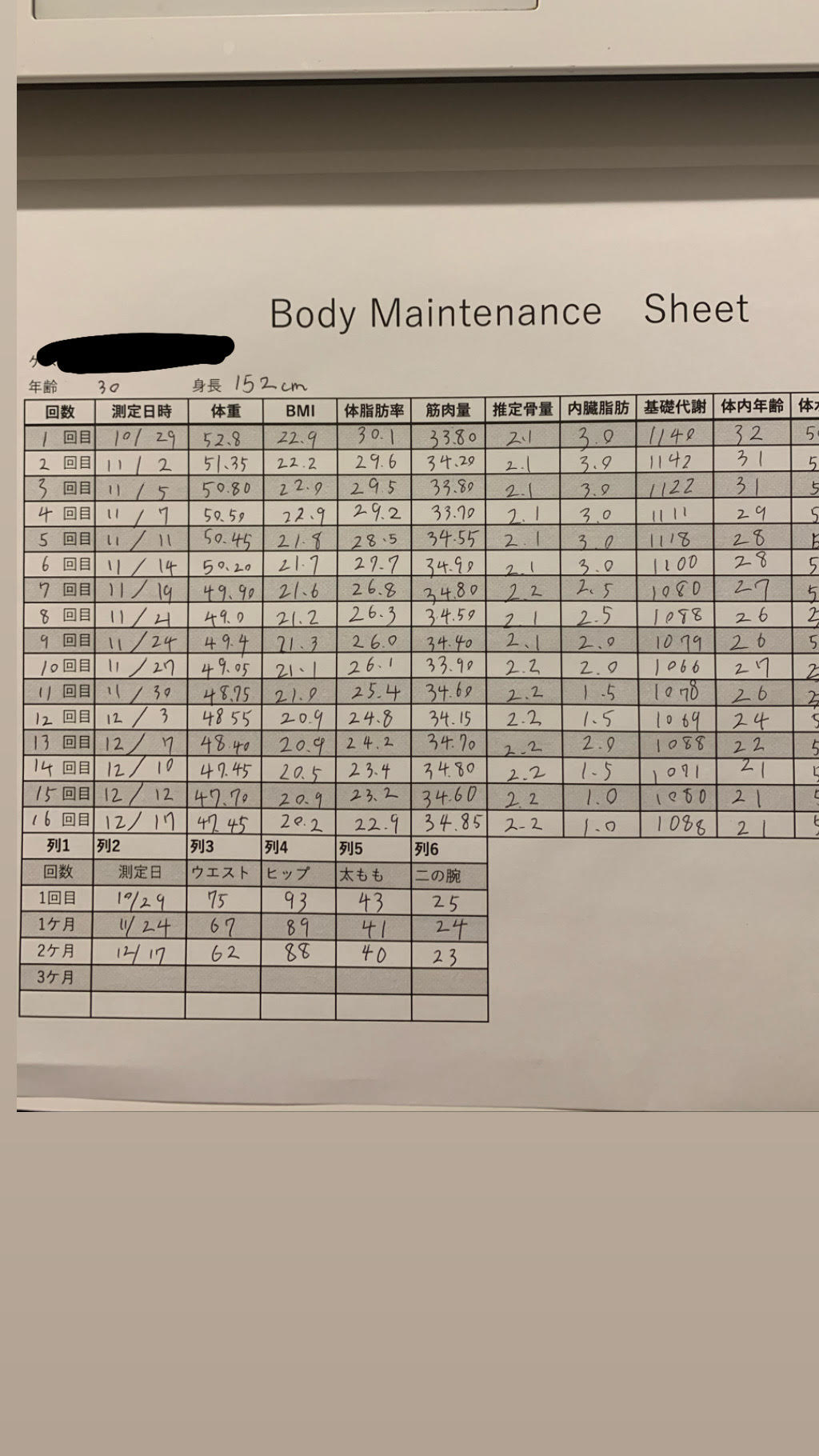 30代女性 身長は152㎝ けして痩せやすい体質の方でなくとも下記の結果を出すことが可能です。